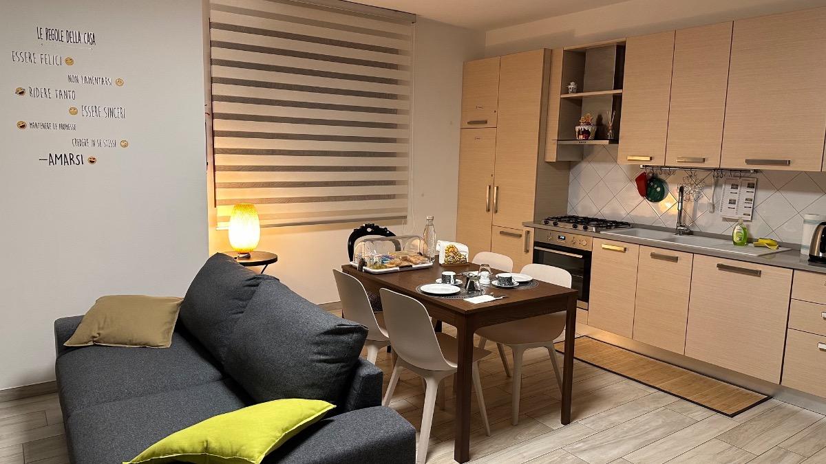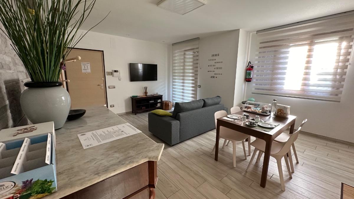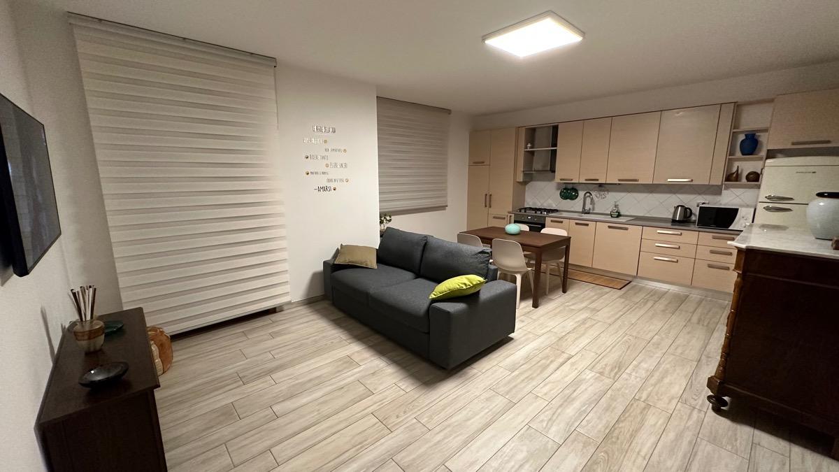 La Casa di Gemma is a small luxurious and modern apartment located on the ground floor of a private building. It can be accessed both from the garden and from the porch and is made up of four areas: living area (with kitchen, dining table, TV, and a comfortable sofa bed), hallway (with laundry upon request), bathroom (including shower), bedroom.