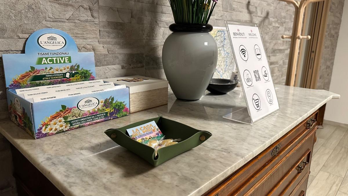 You can find: Various types of biscuits, rusks, plumcakes, crackers, jam, chocolate, Nutella, honey, fruit juices, highly digestible milk, tea, herbal teas and Illy coffee in single-serving capsules.