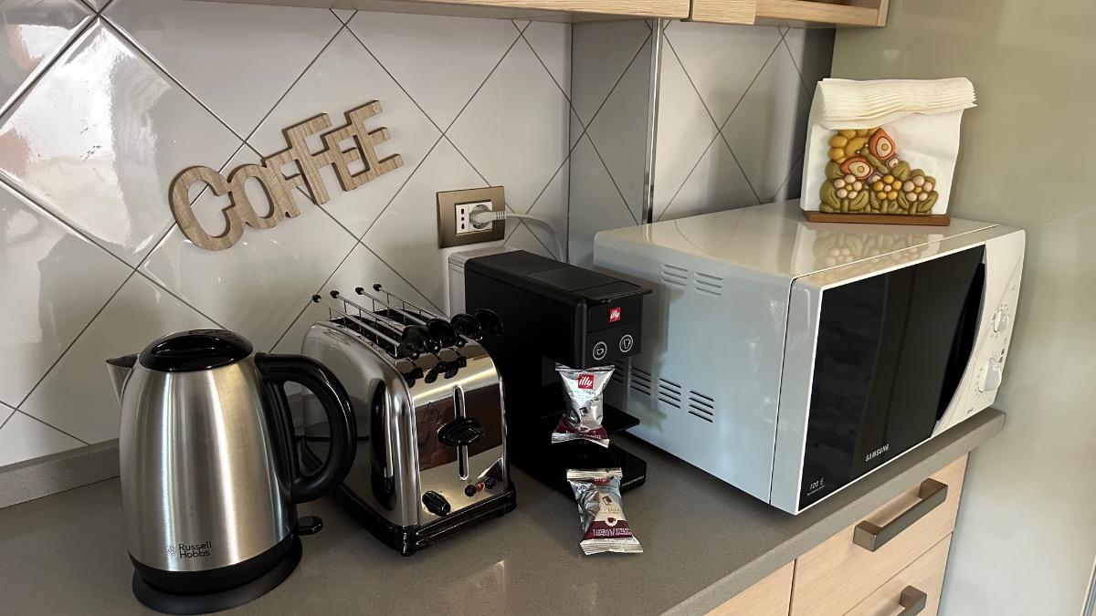 You also have at your disposal: Toaster, Kettle, Microwave oven and Illy coffee machine for capsules.